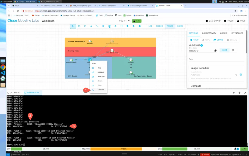 Build your data model and change the highlighted lines accordingly to your POD. To get the serial number, log in to your NXOS9KV-01 using CML.